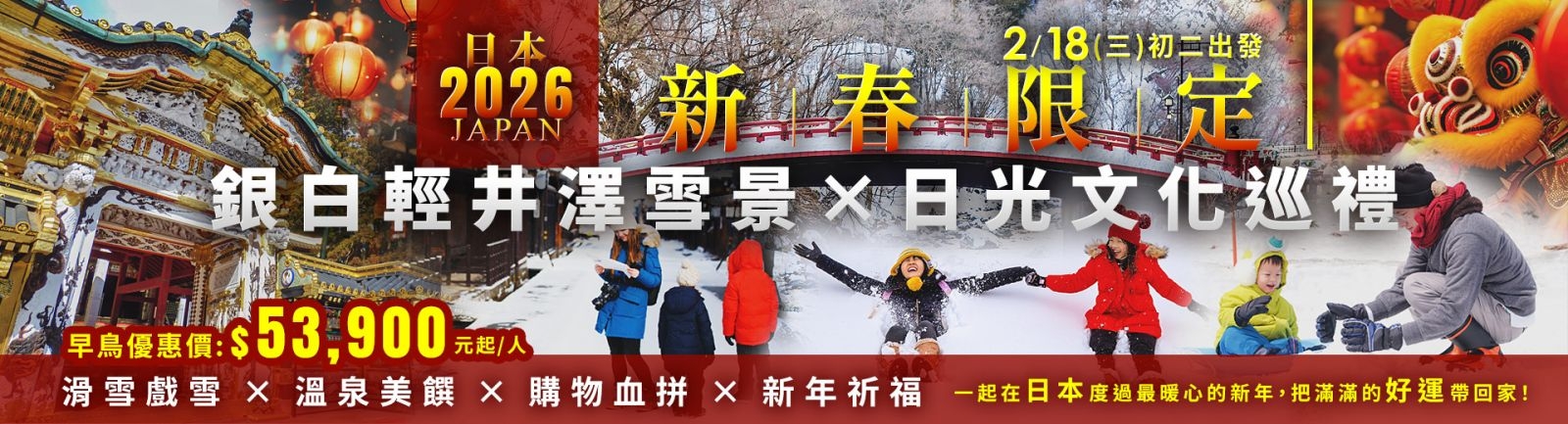 新春限定!滑雪戲雪、溫泉美饌、購物血拼、東照宮祈福 、在日本過一個最暖心的冬日新年!帶回滿滿的新年好運!